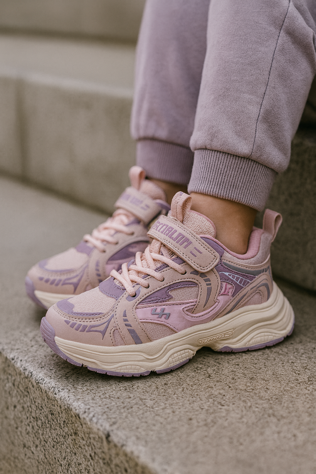 La Cosmic Blossom combina estilo, comodidad y fantasía en un solo modelo pensado para niñas con personalidad brillante. Su mezcla de tonos rosa pastel, lila y crema crea una estética suave y encantadora, mientras que los detalles en gris metálico añaden un toque futurista inspirado en aventuras espaciales.