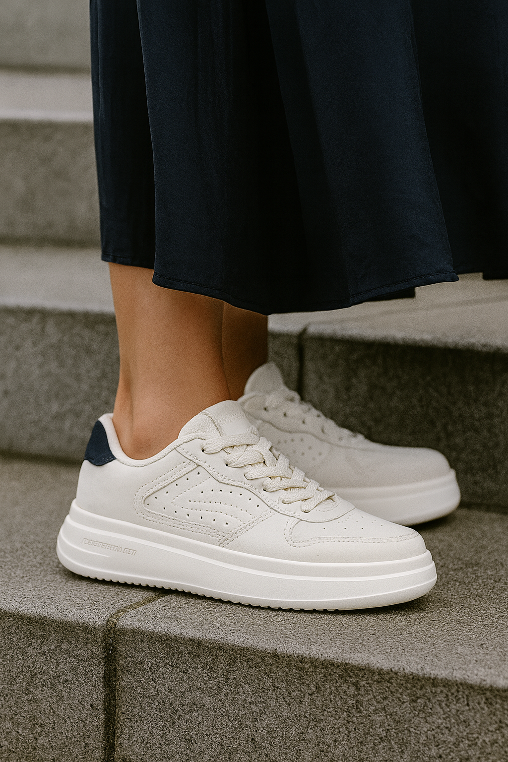 La Ivory Glide es la sneaker perfecta para la mujer que quiere estilo sin esfuerzo: fresca, combinable y muy estética. Su diseño curvo y perforado le da un toque sofisticado, mientras la suela volumétrica aporta modernidad y tendencia sin verse pesada.
