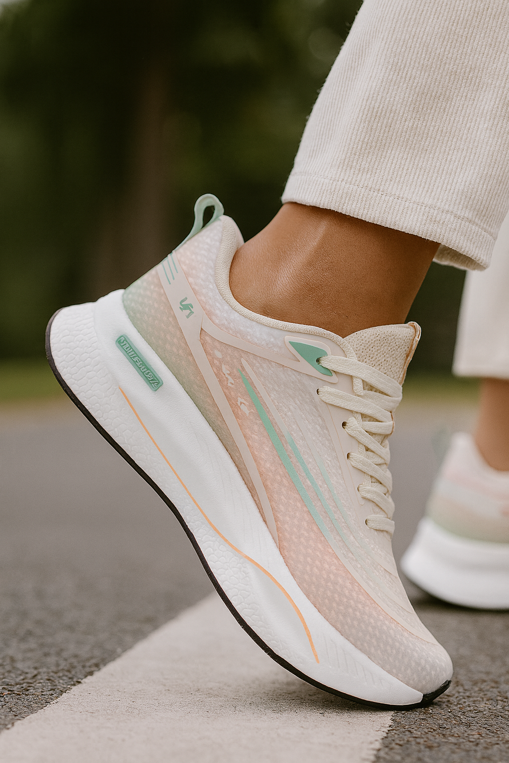 Es una sneaker diseñada para mujeres que aman los tonos claros, minimalistas y combinables con outfits beige aesthetic, streetwear pastel o looks deportivos estilizados.