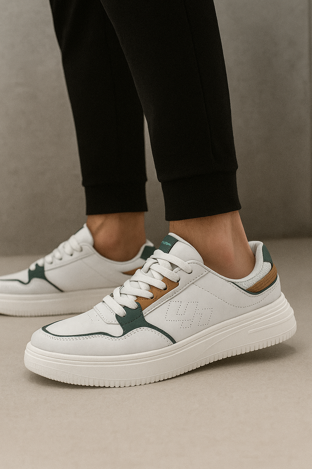 La ABX Urban Core redefine el concepto de calzado urbano con una silueta que equilibra diseño limpio, materiales premium y presencia atemporal. Su base en blanco mate con acentos verde oscuro y detalles camel crea una armonía visual elegante, ideal para quienes valoran el estilo discreto pero con carácter.