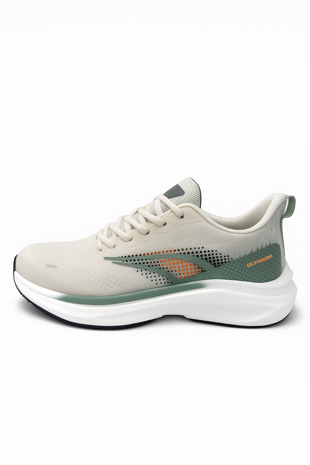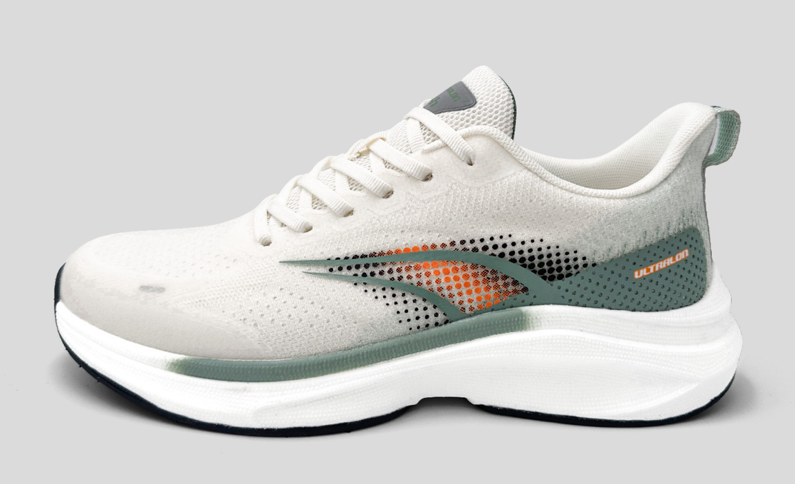 La ABX Zenith Motion redefine la estética del running urbano con una silueta elegante, moderna y equilibrada. Su base blanco mineral con degradado gris-verde y acentos en naranja metálico evoca velocidad y energía contenida, fusionando tecnología y diseño visual de alto impacto.